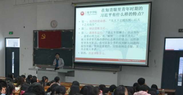 党课中,金晶老师向同学们详细介绍了习近平总书记从1969年到1975年在陕北七年知青的艰苦成长历程,分享了习近平总书记在知青岁月中的个人经历和精神力量。从“知青说”、“村民说”、“各界说”到“我们学”,金晶老师用《习近平的七年知青岁月》一书中的“为群众办实事是近平始终不渝的信念”、“群众需要什么,群众想要怎么办,干部就要带着大家怎么办”、“我们选近平当村支书,最主要的是他做事公道、敢于担当,能跟老百姓打成一片,群众需要什么,他就干什么”、“近平敢说敢做敢担当”、“从心底里热爱人民,把老百姓搁在心里”、“近平与我们同吃同劳动”、“群众最讲究的就是‘公道’二字,最信服的就是公正的人”、“近平既一心为民办事又善于为民办事”等鲜活的事例给同学们讲述了习近平总书记以人民为中心的发展理念。同时,金晶老师也教育同学们学习习近平总书记“肯读书善学习”的精神,珍惜时间、努力学习,争做中国特色社会主义事业的合格建设者和可靠接班人。