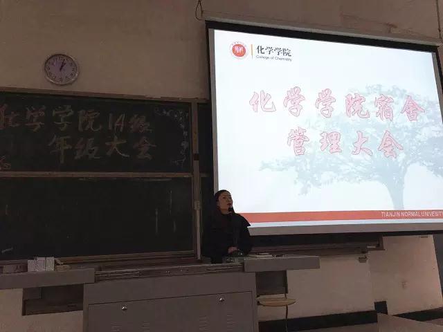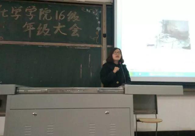 2016年11月2日中午,化学学院各年级大会在劝学楼A111召开,在党委副书记金晶老师、学工办辅导员老师毛栋、佘晓晓老师的主讲下顺利进行。