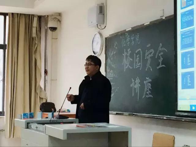 2017年3月23日下午2:00,由化学学院信息部主办的校园安全教育讲座于劝C101成功举办。校保卫处治安科副科长杨勇老师作为本次校园安全教育讲座的主讲人出席了本次活动。
