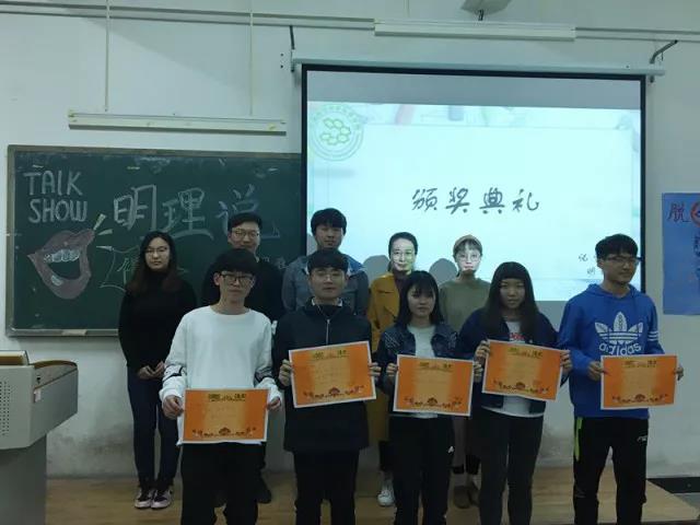 2018年3月28日下午18:30化学学院明理社于明B419成功举办脱口秀“明理说”活动。出席本次活动的嘉宾有生命科学学院明德社社长刘梓莹,化学学院社联副理事长高国杰,明理社社长郭美祺,明理社副社长周正、王田田。