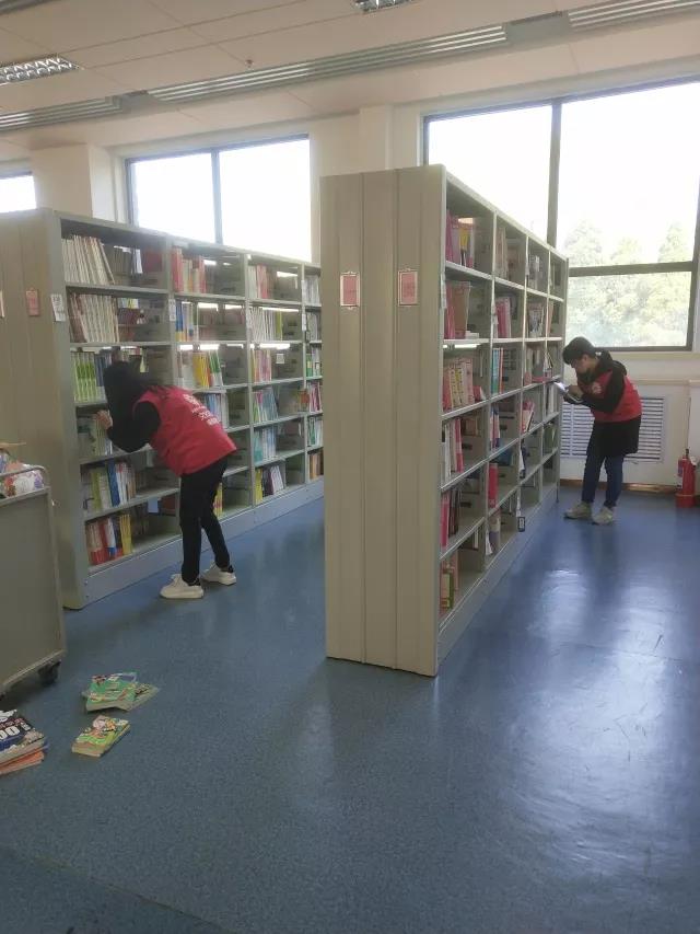 今天风很大,但却吹不散大家的热情。大家早已等待不及,纷纷摩拳擦掌。通过负责人老师的耐心讲解,志愿者们了解了整理图书的方法和小技巧。