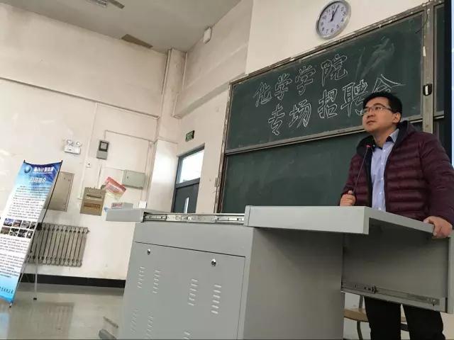 2016年11月3日中午11:30,化学学院在劝A315成功举办了面向2017届毕业生的专场招聘会。出席本次活动的有化学学院党委副书记金晶老师,学工办辅导员张喜盈老师等。此次招聘的公司为天津津检危险品技术有限公司和量传计量公司。