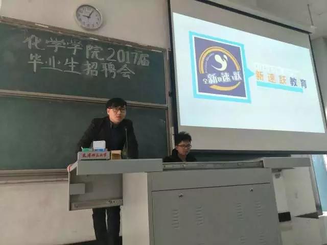 2017年3月13日,化学学院于9:00和16:30分别在劝A113和明B219面向2017届毕业生举办了两场招聘会。出席本次招聘会的有:化学学院党委副书记金晶老师、副院长朱柏林老师,学工办杨欣艳老师、魏娜老师、佘晓晓老师。到场企业有:新速跃教育、量传计量、江苏恒瑞医药、中公教育、学大教育和世和科技。