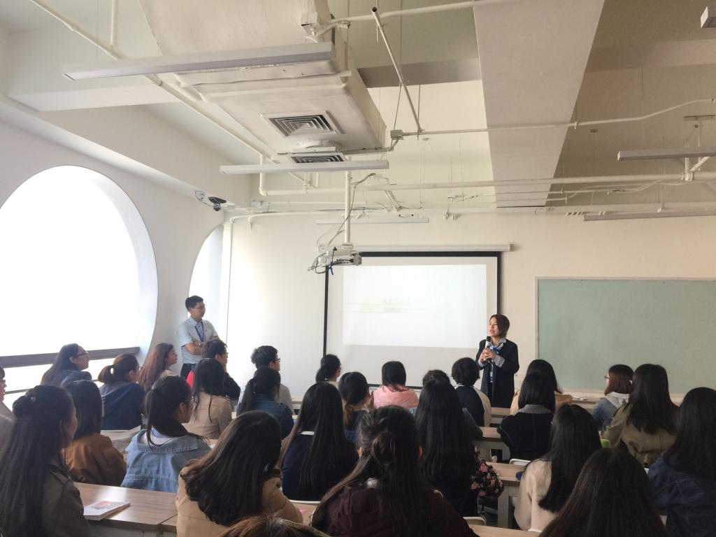优胜(中国)教育集团首先向同学们详细介绍了集团的发展历程、企业文化、运营模式、员工发展通道以及招聘需求和入职条件,并带领同学们参观了集团总部的整体办公环境。