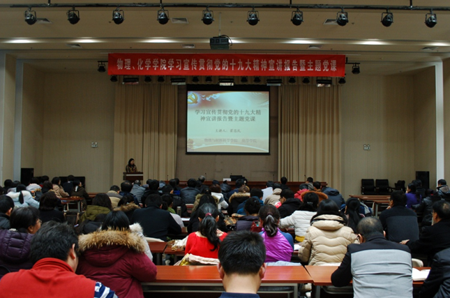 12月7日,化学学院党委邀请翟昌民老师为我院全体党员宣讲十九大精神,我院近两百名多名师生党员认真聆听了主题党课。