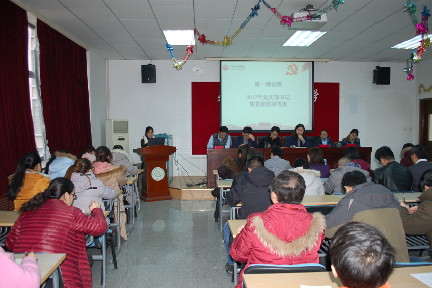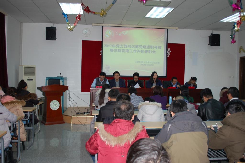 2018年1月17日,化学学院2017年支部书记年终述职考核暨党建工作评优表彰大会在明理楼B区220教室举行。学院党委书记田鸿芬主持并讲话,学院党委副书记金晶、副院长杨恩翠、王波、朱柏林、李程鹏出席并担任评委。我院党委11个基层党支部书记、党建工作优秀个人和先进集体参加会议。