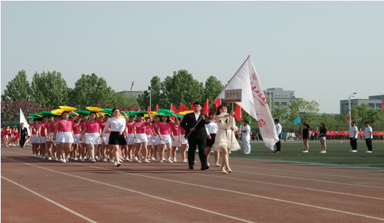 “精彩时刻,青春与友谊交响……”在第十三届全运会会歌声中,运动会正式拉开帷幕。“追梦”阳光体育展示后,化学学院方队踏着矫健的步伐走入赛场,迎着初升的朝阳,队员们目光如炬、英姿勃发,向全校师生展现了化院学子的青春与活力。