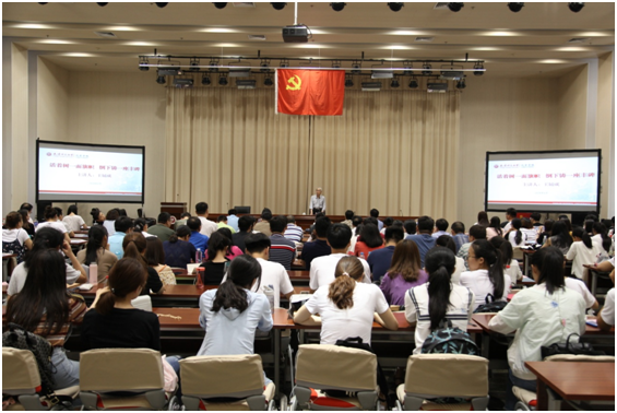 从仲夏到初秋,从津城的大街到小巷,天津师范大学副校级巡视员、77岁的王辅成老人异常忙碌,他奔走于多所高校,延续着宣讲“三观”的辛勤之路。今天王辅成老师来到我院,为全体师生党员做了题为《活着树一面旗帜倒下铸一座丰碑》的讲座。对于讲座,王辅成老师给自己定下了雷打不动的“约法三章”:一是站着讲,以体现对听众的尊重;二是脱稿讲,力求生动、自然,达到活跃气氛的效果,也体现对自己的严格要求;三是不计报酬讲,如果非给不可,就将这些钱用于扶危济困、助弱帮残。因此,他在讲座中坚持站着讲、脱稿讲和不计报酬讲。在讲座中,他真诚地鞭策广大师生党员:“活着树一面旗帜,倒下铸一座丰碑!”我院近两百名师生党员共同聆听了这位银发老人感人肺腑的宣讲:“同学们,我们都应认真思考,人活着是为了什么?人生应当怎样度过?从学生时代起,我们就要争做信仰的楷模,这是根本;争做学习的楷模,这是前提;争做修德的楷模,这是基础;争做守法的楷模,这是保障;争做奉献的楷模,这是核心;争做创新的楷模,这是关键!”